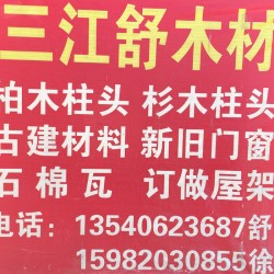 崇州三江舒木材主要回收、销售各种:柏木柱头、杉木柱头、古建材料、新旧门窗、石棉瓦、订做屋架等,是一家有多年从业经验,产品丰富的木材厂家。回收旧木材,为普通人民排忧解难,销售各种木质品,为商家提供充足的资源。用合理的价格,优质的服务,满足了客户的各种需求,真诚期待您的来电!